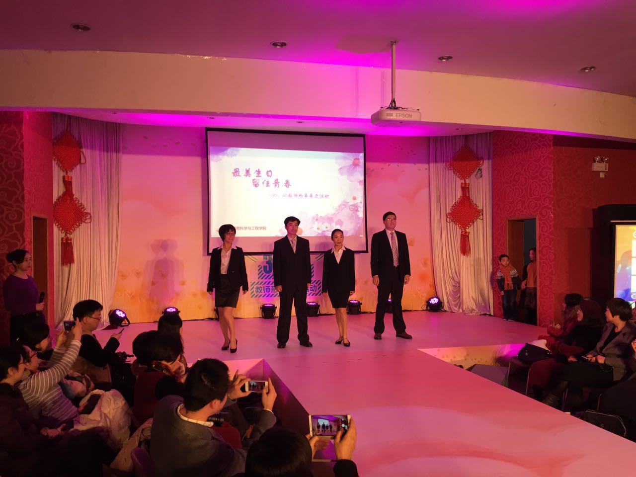 20161216日下午 ,国产自拍 工会、人事处在八角亭二楼联合举办“最美生日、留住青春——3040教师形象展示活动”。国产自拍 参加人员有:侍洪波、杜文莉、刘志鹏、万永菁、何高奇、梁莹、杨富琴、韩宇光以及3040教师钟伟民、刘济、徐震浩、王蓓,、张见、蒋翠玲、冷春霞、常虹、朱远明、李进龙、张海腾、叶琪、付歌等20多名教师参加。其中,由院长杜文莉、副书记刘志鹏、副院长万永菁等13名教师组成的展示队代表国产自拍 进行了精彩的T台形象展示演出,先后展示了职业装、亲子装、旗袍装、运动装,伴着优美的音乐,国产自拍 代表队大气、优雅、自信的风采赢得台下一阵阵热烈的掌声,最终在全校11支参演队伍中拔得头筹,荣获“最佳展演奖”。