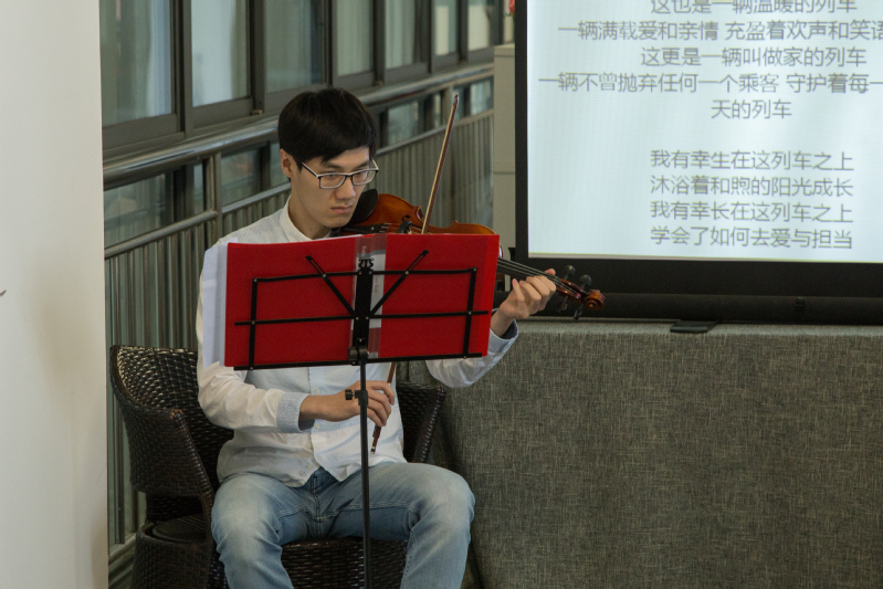诗会从校友蔡福全的谱曲诗歌《梅陇路上,长大了》作为序章,勾起了学生们追忆旧日、展望未来的诗人情怀。而后,7位同学逐一吟咏自己的诗作,周德伦将祖国形容为一辆路途漫长却又向着希望的“梦想号”列车,守护的使命、驾驶的徽章祖祖辈辈地流传着;孙浩眼里的山河氤氲成了一个锦绣的梦,我们青年宛如青鸟徜徉在瑰丽的中国梦中;王子晨面对着华夏大地,说有梦想三寻,期待着中华能披襟斩棘、巨龙腾飞;王喆琪和陈歒阳眼中的中国梦有着绚丽的色彩、多元的价值;房天顺歌颂少年意气,英姿勃发;韦钦臣立誓“待少年郎,勤学习,丰思想,定傲看寰宇圆梦中国”。在同学们抒怀胸臆、朗诵解读之时,张晨曦的小提琴伴奏和顾庞的书法展示更为诗会增添了一抹亮色和文化底蕴。