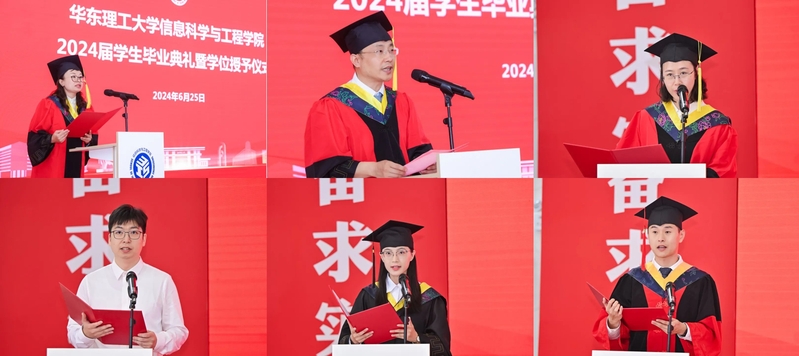 2024届优秀毕业生和优秀团员名单。本科生毕业代表潘亚宁和研究生毕业生代表杜培浩回忆了他们在华理生活的点滴和所学所感,表达了对国产自拍