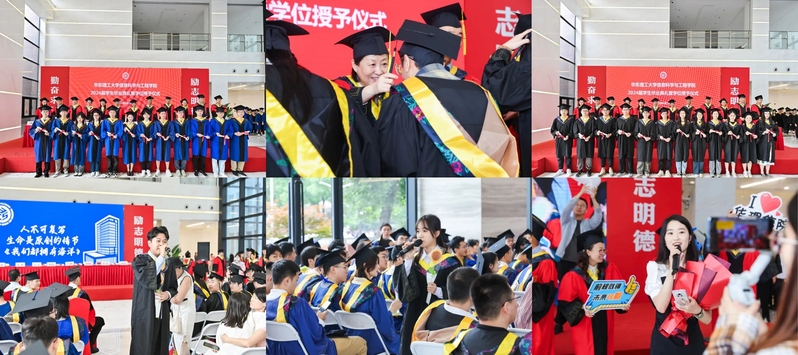 钟伟民发表“心怀凌云之志,共赴时代之约”主题讲话,他告诫同学们要将“勤奋求实,励志明德”的校训精神刻画在今后的路途上,把个人的小蓝图融入中国特色社会主义事业的大蓝图。校、院领导为全体毕业生拨穗正冠,并赠送毕业生卷轴。本科生李阳光、杨仲秀与研究生辅导员吕奕共同献唱,校院领导、辅导员一同上台,将喜悦与期盼传递给每一位毕业生。
