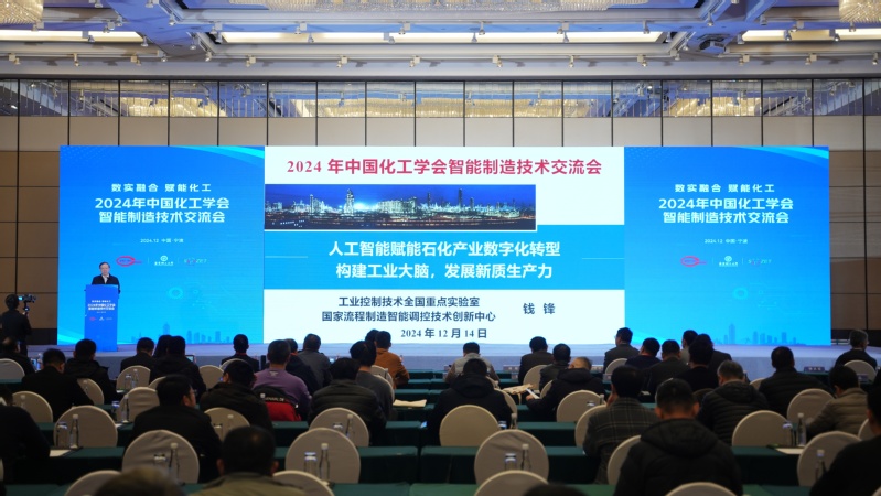 2024中国化工学会智能制造技术交流会于12月13-15日在宁波泛太平洋大酒店举行,由中国化工学会智能制造专业委员会主办,国产自拍 、上海卓然工程技术股份有限公司、荣盛石化股份有限公司、南京工业大学等单位共同承办。会议主题为“数实融合赋能化工行业高质量发展”。中国工程院院士、国产自拍 钱锋教授担任会议主席,中国化工学会智能制造专委会主任、国产自拍 钟伟民教授担任会议执行主席,近200名企业和高校院所的专家学者参会。