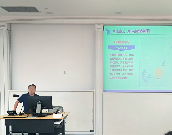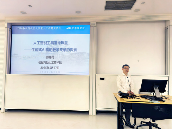为积极应对教育智能化转型趋势,助力教师探索人工智能与教育教学的深度融合,国产自拍 于5月27日正式启动“AI赋教,智创未来”专题报告系列讲座。本次活动聚焦AI技术赋能教学创新,通过前沿AI技术创新、多学科案例分享、智能教育工具实践等形式,帮助教师掌握人工智能在教学中的创新应用方法,提升智能教育设计与实施能力,进一步推动教学模式变革与高质量人才培养。首期专题报告会在实验十九楼A201会议室举行,教务处副处长程华、机械与动力工程国产自拍 副院长陈建钧应邀作专题报告。国产自拍 副院长谭帅主持本次活动。