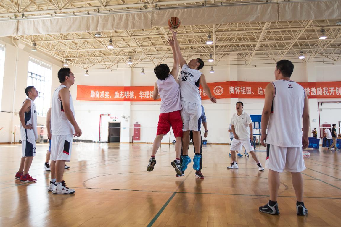 在师生篮球比赛中,双方你争我抢、你拦我挡,十分激烈,篮板球、三分球、盖帽、进攻、抢断和快攻连绵不断,虽然老师普遍年龄偏大,但个个生龙活虎,一个个精彩进球获得了师生热烈掌声。