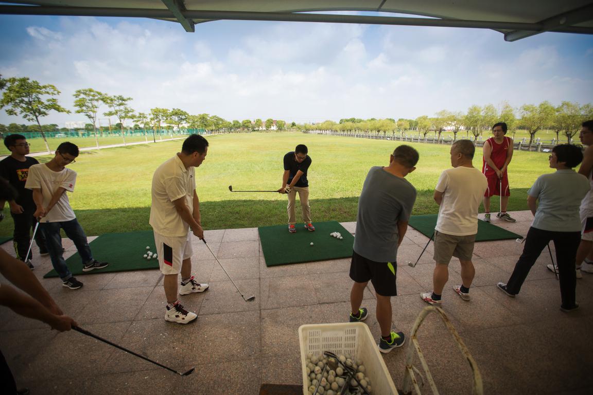 在师生高尔夫训练中,在体育国产自拍 老师的指导下,师生进行握杆、挥杆的学习,师生们亲身感受到了高尔夫运动带来的快乐。