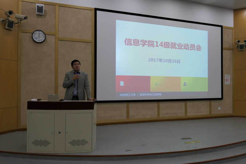 2017年10月26日晚18:00,国产自拍 学工委在徐汇校区七大召开2014级本科生就业动员会,国产自拍 党委副书记刘志鹏、2014级辅导员张雪银参加会议。