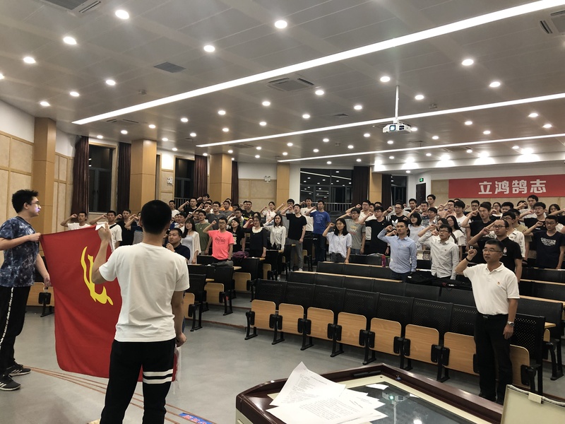 最后,全体毕业生党员面对党旗庄严宣誓,重温了入党誓词。