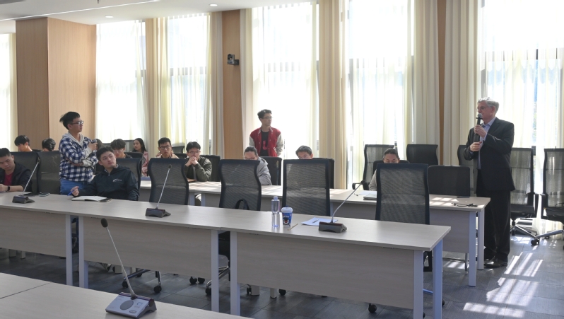 在互动阶段,教师与学生们踊跃提出问题,特别是拔尖学生针对自己的研究领域和发表文章的疑惑,Prof. Hancke 都耐心且详尽地进行了回答。